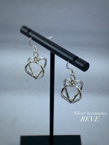 丸線を使ったハート型のピアス。四方にハートが見えるようにデザイン。