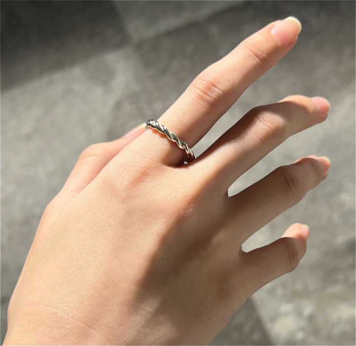 こちら丸線を2本捻ったシルバーアクセサリーのツイストリングになります。