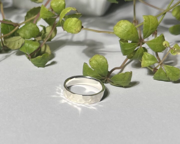 槌目の入ったシルバーアクセサリーリングになっております。その日その日で槌目のデザインが変わるので写真とは異なりますのでご了承下さい。