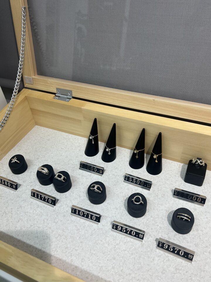 商品に関しましてはリング・ネックレスをはじめピアス・イヤーカフ・ブレスレット等豊富なバリエーションを取り揃えております。
