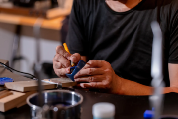 リングやネックレストップなどをワックスを使って盛ったり削ったりしながら完成したデザインをイメージしながら原型を作ります。