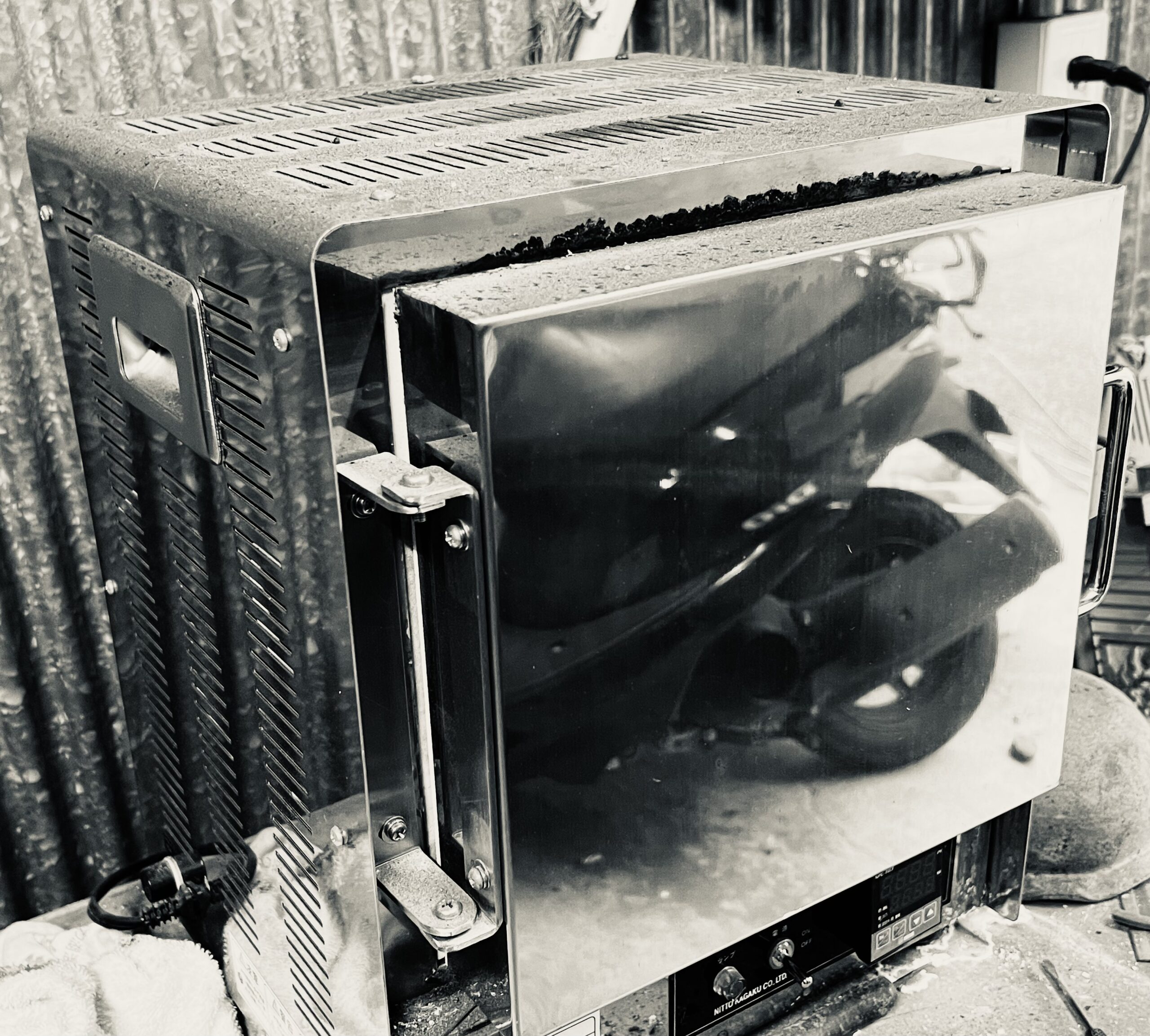 980℃まで温度が上がったら、今度は電気炉内で500℃まで温度が下がるまで置いておきます。