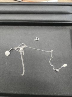 ・ネックレスの留め具を外してチェーンを広げ、絡まった場所を確認する。