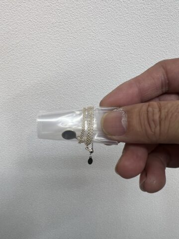 このように保管すると、チェーンが絡まないだけでなく、黒くなる現象(硫化)を防ぐ効果もあります。